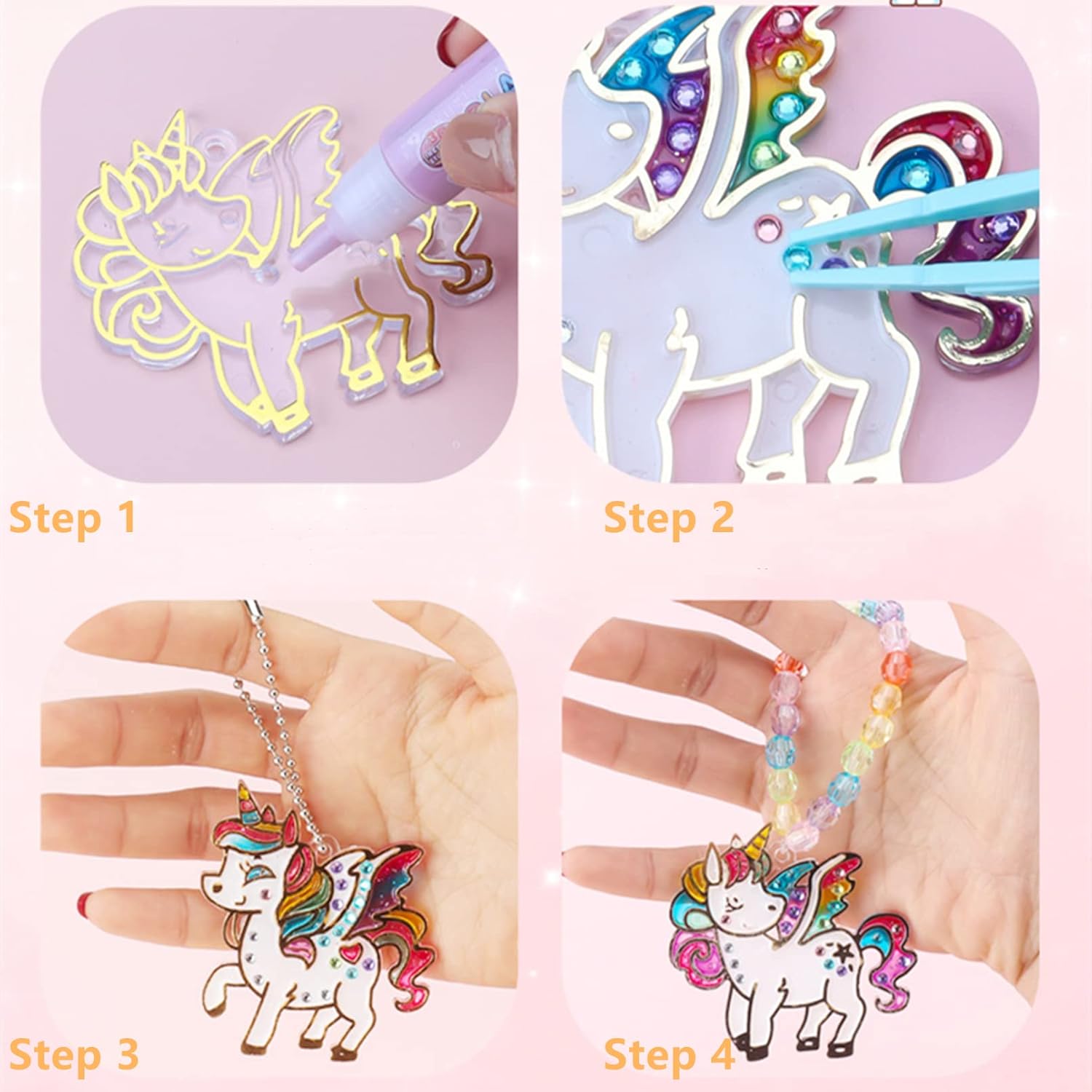 The kit includes everything your child needs: 8 crystal pendants, 6 paint colors, 8 chains, beads, and tweezers, making it easy to start crafting.
